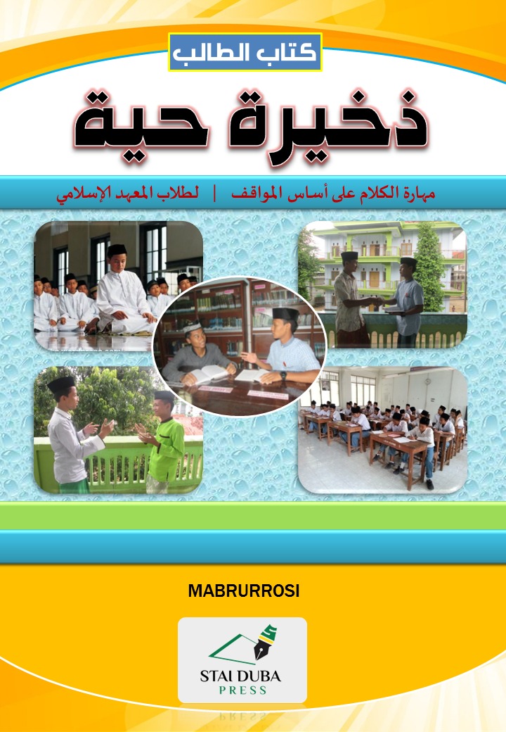 Buku ini berisi materi keterampilan berbicara Bahasa Arab sesuai dengan situasi yang dibutuhkan oleh santri dan pelajar. Buku ini sangat membantu santri dan pelajar dalam mengembangkan keterampilan berbicara Bahasa Arab. Muatan materi berupa mufradat baru, ungkapan singkat, teks percakapan (hiwar), materi latihan, evaluasi, permainan bahasa dan kamus pembantu.